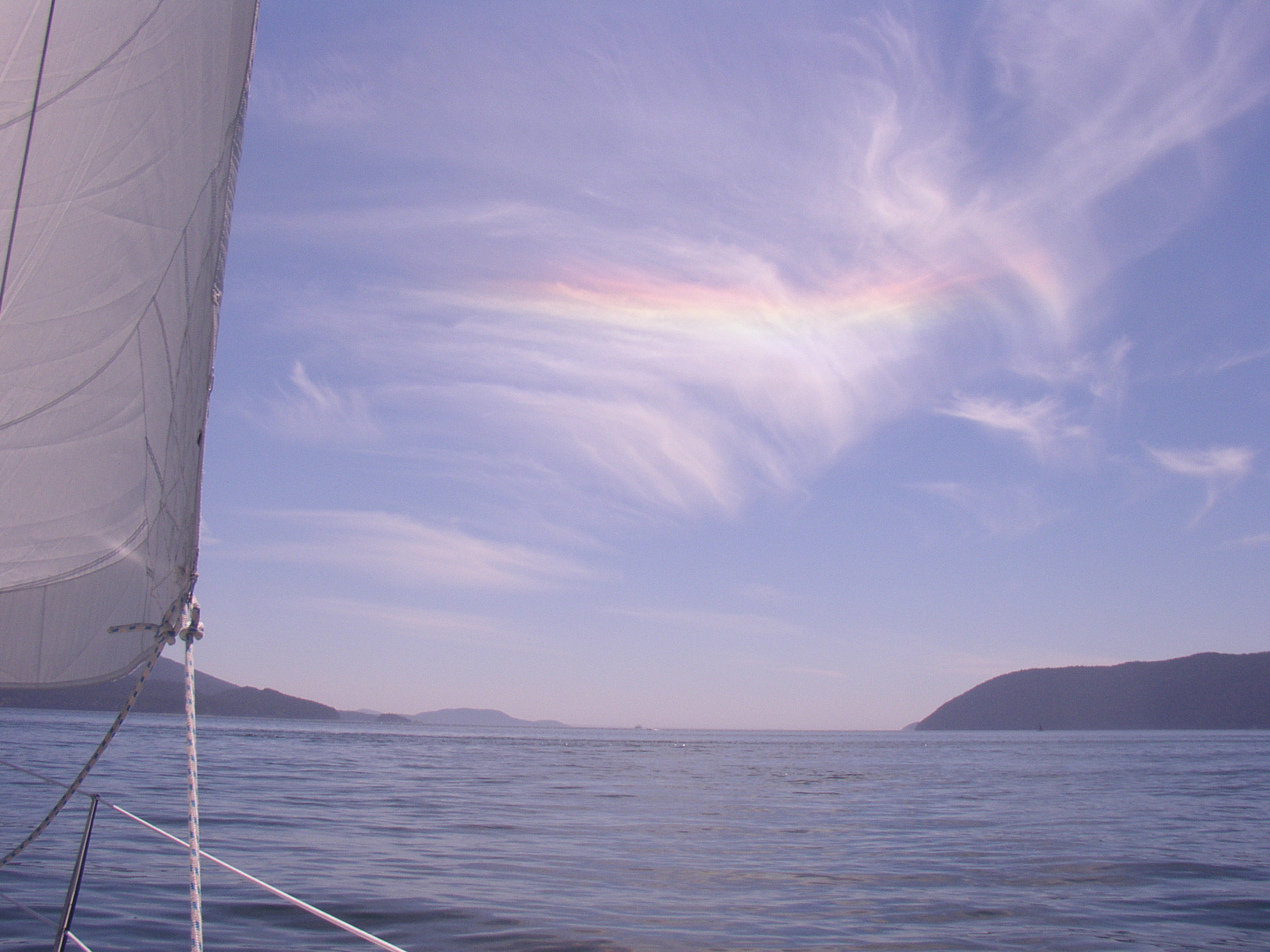 Rainbow, reversed, in cirrus clouds. Rosario Strait